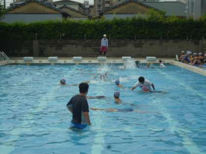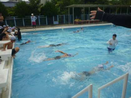 中学年の様子です。ビート板を使ってバタ足の練習をしたり、クロールの息継ぎの練習をしていました。