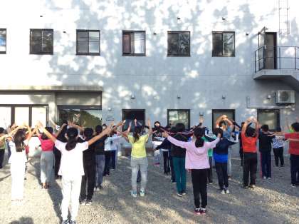 今朝のハチ高原はよい天気です。全員元気で朝のつどいをしました。