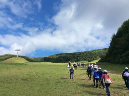 鉢伏山の標高は1221mで、みんな一生懸命に頂上目指して登山をしました。