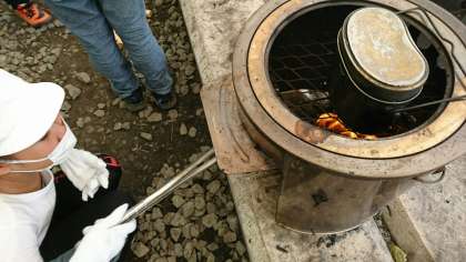 登山の後は、オレンジジュースをいただき、少し休んで12時より「カレーライス」をつくりました。