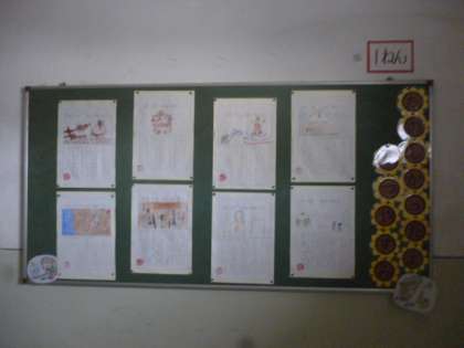 1年生の掲示板も絵日記が掲示されていました。1学期に学習したひらがなやカタカナも間違えずに書くことができていました。