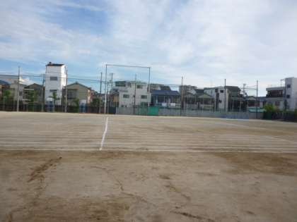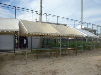 運動会の練習のために、教職員で運動場のライン引き、テント張りを行いました。