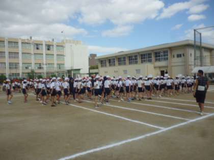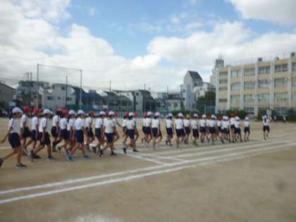 9月19日(木)、運動会にむけて1回目の全体練習がありました。今日は開会式の入場行進、退場の練習を行いました。どの学年も、しっかりと腕をふり、足をあげて行進することができていました。本番も、堂々と行進してほしいです。