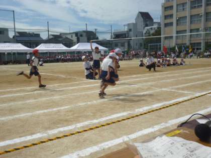 2年生「ゴールをめざして はしれ〜!はしれ〜!」の様子です。トラックを使ってのはじめての徒競走でしたが、上手に走ることができました。