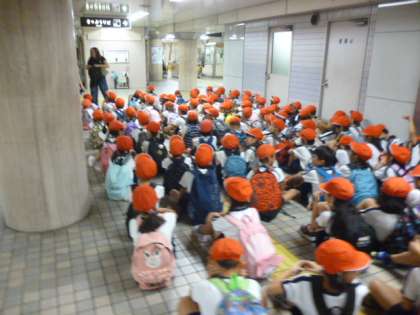 10月4日(金)、1・2年生が秋の遠足でキッズプラザに行きました。1年生49名、2年生59名、計108名でした。平野駅まで歩き、電車を乗り継いでいきました。