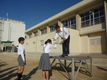 10月28日(月)、児童朝会の様子です。今週は、中国語弁論大会、バドミントン大会の表彰がありました。本校児童がいろいろなところで頑張っているようです。月曜日から素敵な報告でした。今週の週目標は「廊下を走らないようにしよう」です。自分が大きなけがをしないようにするためにも、自ら気を付けてほしいです。