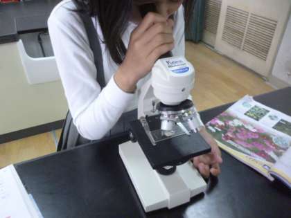 5年生の理科の授業の様子です。ヘチマの花粉を顕微鏡で見ていました。子どもたちは、とても驚いた表情でじっくり観察していました。