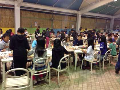 夜はバーベキュー、朝はバイキングをおいしくいただきました。