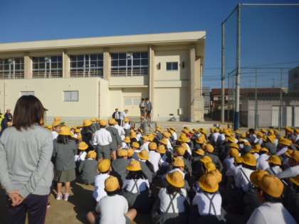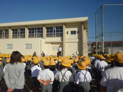 11月5日(火)、児童朝会の様子です。校長先生からは「木枯らし1号が吹いて、朝と夜が冷え込むので体調を崩さないように」というお話がありました。給食委員会からは給食アンケートについて、図書委員会からは漢字クイズ大会の名人級の発表がありました。