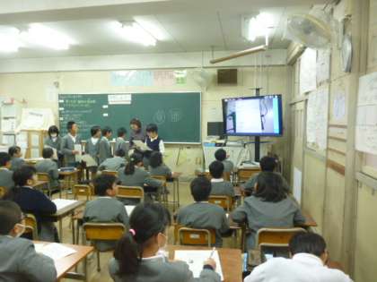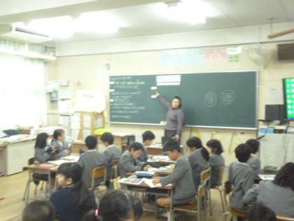 4年2組、公開授業(理科)の様子です。「冬、クワガタはどうしている?」というテーマで、自分で予想して、予想したことをグループで交流し、全体で発表していました。子どもたちは、じっくり考え、絵なども使って分かりやすくまとめることができていました。
