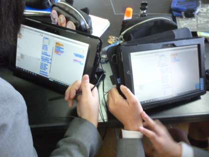 6年生、プログラミング学習の様子です。スクラッチを使用したプログラミング体験を行いました。自分の意図する活動を実現するためにどのような動きを組み合わせればよいかを考えながら、プログラムしていました。自分の思うような動きになるように試行錯誤を繰り返しながら、楽しく学習していました!