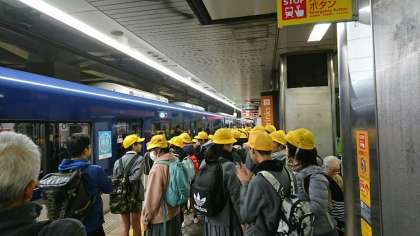 8時25分 学校を出発。地下鉄平野駅→天満橋で京阪電車に乗りかえ!