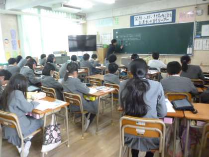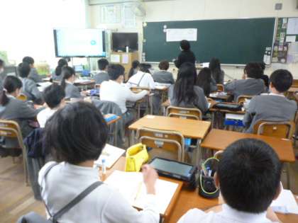 5年生、学習参観の様子です。算数科「分数のかけ算」の学習で、分数×整数について考え、整数を分子にかければ答えが求められることについて気づくことができました。