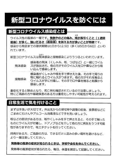 「新型コロナウイルスを防ぐには」もご一読ください。