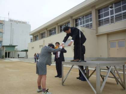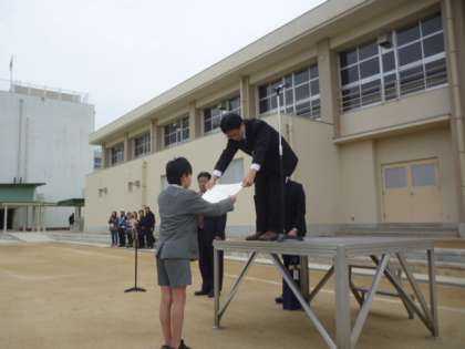 区長表彰の様子です。代表児童が賞状を受け取りました。