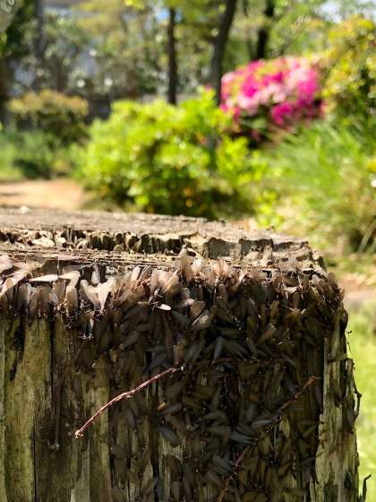 大量の羽化した虫が羽ばたこうとしています。