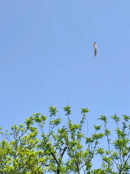 木の上からは何かの幼虫がぶらさがっています。