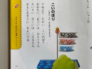 5月5日は、こどもの日でしたね!こいのぼりは見たことがありますか?音楽科の教科書「小学生のおんがく1」の6・7ページや78ページに「こいのぼり」の歌が載っています!お家の人と一緒に歌ってみてくださいね。