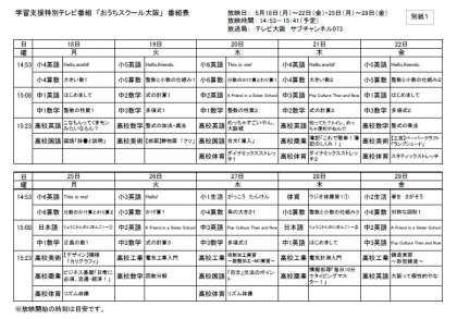 学習支援特別テレビ番組「おうちスクール大阪」番組表
