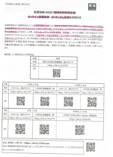 英語のオンライン授業動画についてのご案内です。ぜひ、活用していただればと思います。