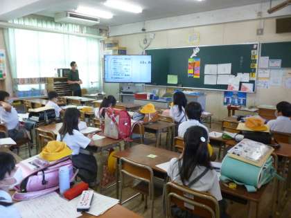4年生、登校日の様子です。3年生で学習する予定だった社会科の内容をプリント学習で進めています。真剣に先生の話を聞いていました。