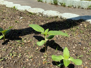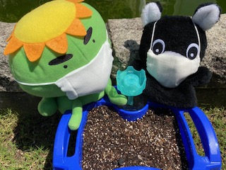 お家でもみることができるように5月28日(木)に子どもたちが植えたあさがおや学習園のひまわりと一緒に記念撮影しました!