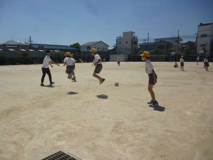 よい天気でした。子どもたちはとても元気です。もちろん水分補給など熱中症に注意をしています。密にも注意しながら、遊んでいます。