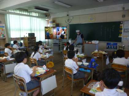 4年生の教室では、静かに「NHK for school」を視聴しながらの給食でした。