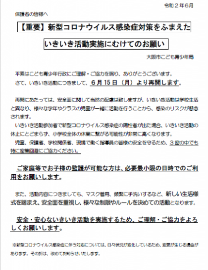 【重要】新型コロナウイルス感染症対策をふまえたいきいき活動実施にむけてのお願い