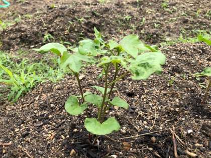 梅雨に入ってから、区役所からいただいた「平野のわた」がぐんぐん大きく育っています。