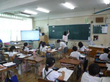 15日より、通常授業が開始しました。久しぶりに全員がそろいましたが、変わらず落ち着いて学習に取り組んでいました。算数のわり算の学習で、タブレットを使いながら楽しく学習しました。