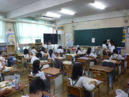 5年生の配膳の様子です。「With コロナ」様式に子どもたちも一生懸命対応しています。今日の給食フォトは、4年1組です。