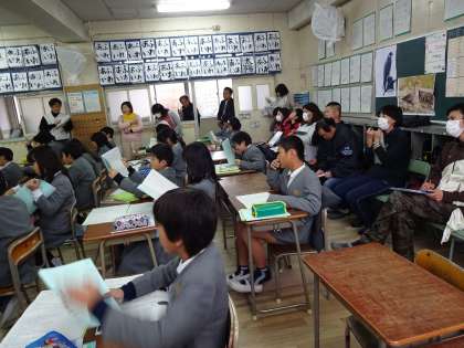 12月4日(木)、5時間目5年2組の教室です。先生がたくさんうろうろしています。そうです。先生の研究授業の日です。今回は5年生、康永先生がその授業を行いました。喜連北小学校では「確かな読みの力を育てる指導法の工夫」を目的に、より魅力的な授業、わかる授業を目指して先生も勉強に励んでいます。そして、この日の五年二組のみんな、とても立派に授業をこなしていました。大したものです。