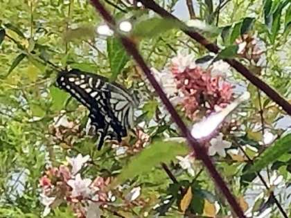 今朝は大きなアゲハチョウが来ています。