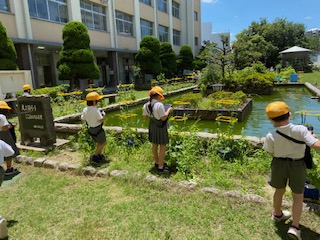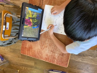 タブレットで朝顔の写真を撮り、観察日記を描きました。タブレットの使い方にも、ほんの少し慣れてきた様子の1年生です。