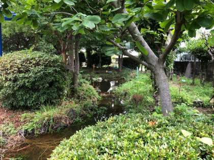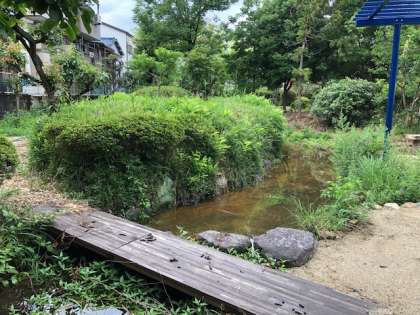 雨がやんでいるときに自然園に行ってみました。プール工事中に水を抜いていた自然園の池や川に水が溜まっています。連日の大雨ですが、大阪でもかなりの雨量になっているようです。