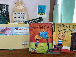 この日読んでもらったのは、「ダメよデイビッド」「デイビッドがやっちゃった」と、紙芝居さかさ絵「おおどろぼうマーサカサ」です。