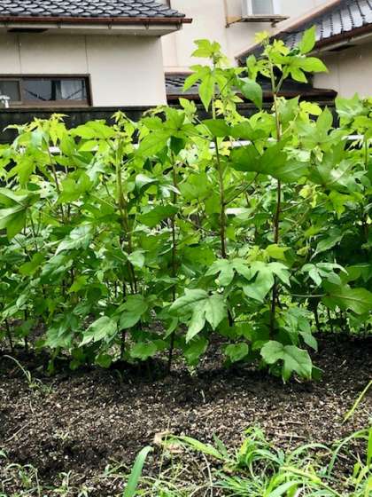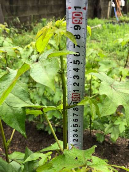 5月に種をまいた「わた」です。7月3日は50センチになっていました。今日は90センチ近くにまで成長しています。