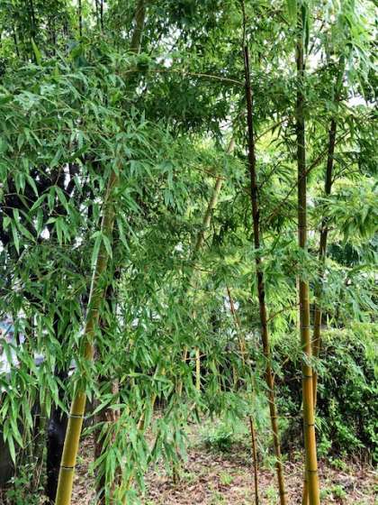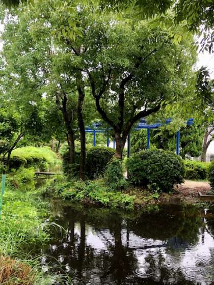 雨の自然園です。池がかなり増水しています。竹林も青々とすくすくと伸びています。