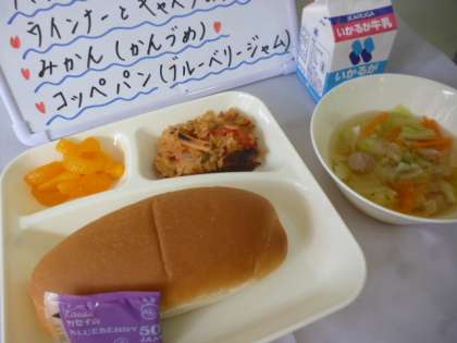 「パエリア」は、旬の赤ピーマンを使用し、ピーマンの赤、さんど豆の緑、カレー粉の黄色で彩りのよい仕上がりになっています。