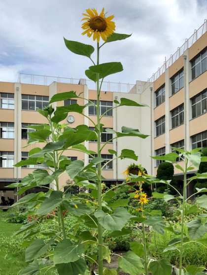 ヒマワリの花がかなり高くなっています。