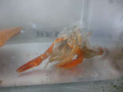 ザリガニが脱皮しました。暑さに負けず、ザリガニも、子どもたちも元気に成長中です!子どもたちが、「脱皮した殻を食べてるねん。」と教えてくれました。