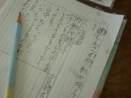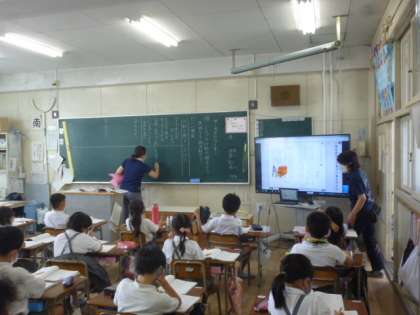 3年生、国語の授業の様子です。「サーカスのライオン」を学習しています。行動や様子からその人物の気持ちを読み取っています。今日は、第一場面。子どもたちは、丁寧にノートを書いています。