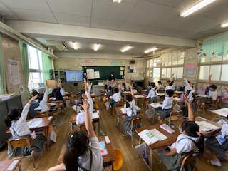 教育実習の先生の授業です。昨日が最終日でした。子どもたちが興味関心をもって学習できるようにいろいろな工夫をしていました。楽しい授業でした!