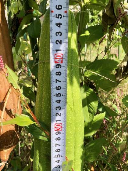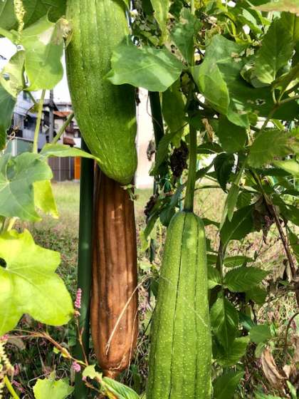 茶色く乾いたきたヘチマ。種がいっぱい入ってします。
