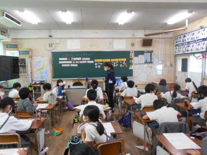 栄養学習の様子です。テーマは「おやつについて考えよう」でした。栄養教諭の方に来ていただき、おやつの食べ方、食べる量などについて詳しく教えていただきました。これからのおやつの食べ方について考えるきっかけになったのではないかと思います。