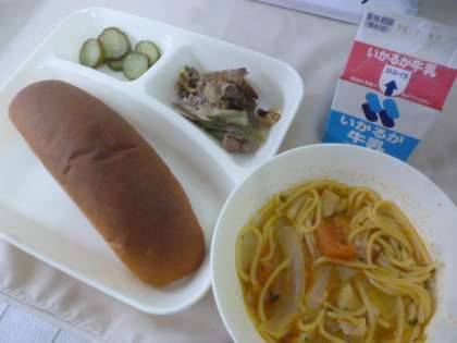 「牛肉のカレー風味焼き」は、牛肉を料理用ワイン、塩、粗挽きこしょう、カレー粉、綿実油で下味をつけ、キャベツ、ピーマンを混ぜ合わせ、焼き物機でやきます。