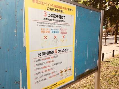 3密に気をつけて秋の公園での1日を楽しんでいます。