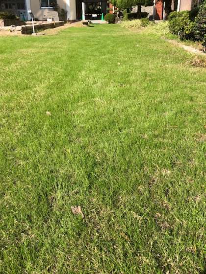 地域のみなさんにまいていただいた冬芝の種が順調に芽吹いています。2週間は養生中で中庭には入れませんが、来週からは大丈夫のようです。秋の陽光に芝生の緑色が鮮やかです。