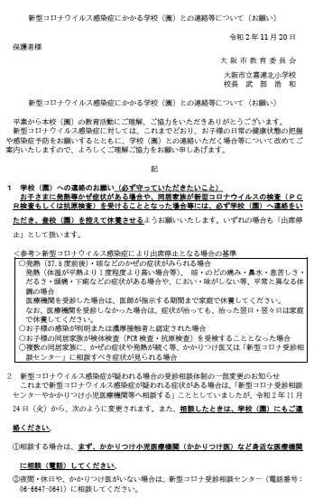 新型コロナウイルス感染症にかかる学校との連絡等について(お願い)